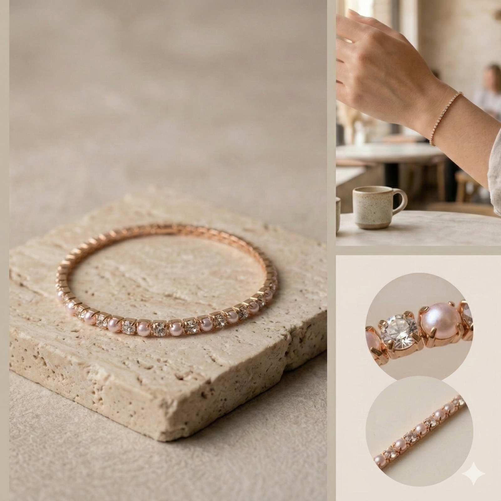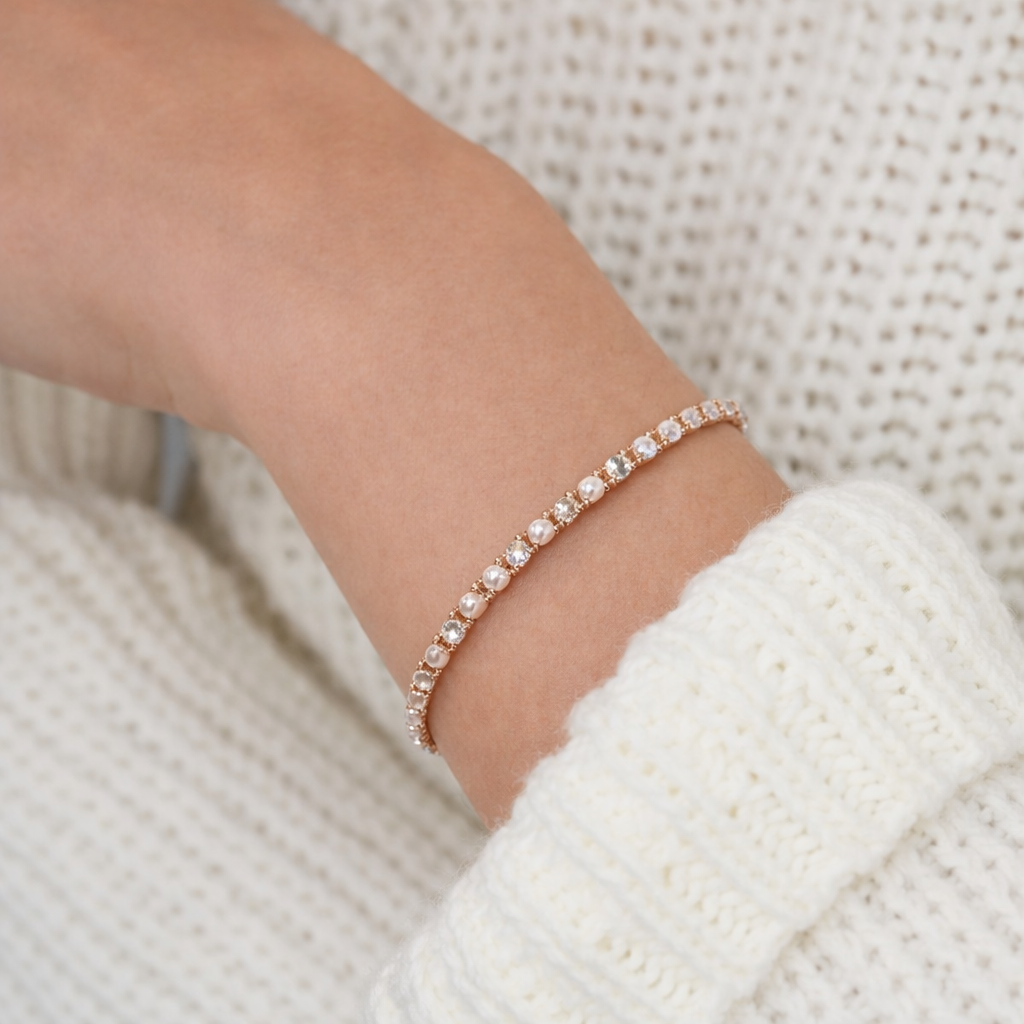 Brățara Tennis cu Perle Rose Gold – eleganță discretă pentru fiecare zi
