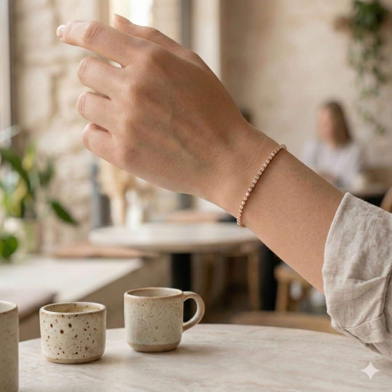 Perfectă purtată singură pentru un look minimal și rafinat, sau stivuită cu alte brățări subțiri pentru un efect mai statement. Se asortează natural cu ținute casual, office sau de ocazie.